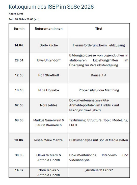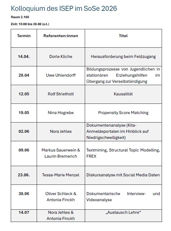 Kolloquium des ISEP im Sommersemester 2026